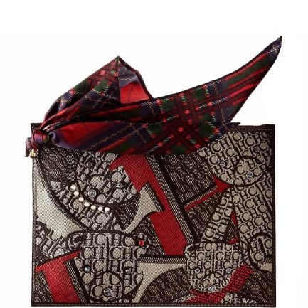 أكملي مظهرك الأنيق مع باوتش كارولينا هيريرا بوشاح أحمر الذي يمنحك إطلالة فريدة من نوعها بتصميم مصنوع من قماش الكانفاس المنقوش بشعار الماركة وراقي، احصلي عليها الأن و أضيفي لمسة رائعة لتكتمل إطلالتك و تناسب أناقتك، لذلك نحرص ان نقدم لك دائماً ماركات أصلية بمواصفات عالمية عبر متجرنا الإلكتروني، فهى حقيبة مريحة فى الاستخدام و تلائم جميع المواقف و الأوقات، اغتنمي الفرصة واحصلي عليها ولا تترددى.