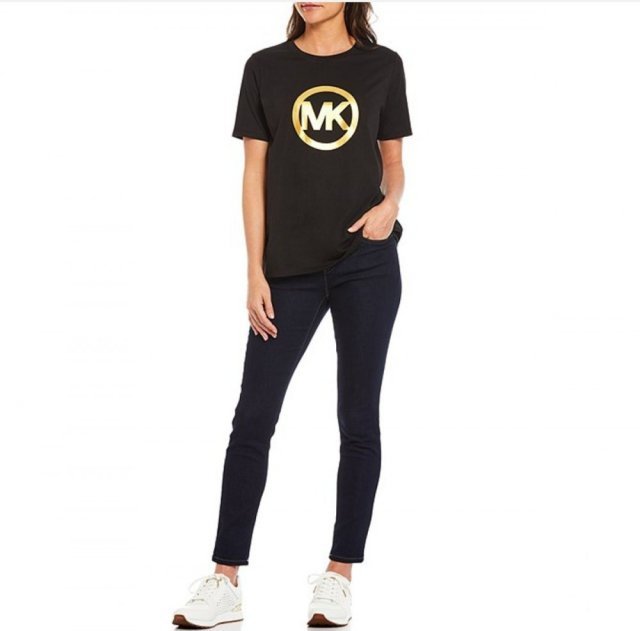 مميزات تيشيرت مايكل كورس أسود بشعار ذهبي :