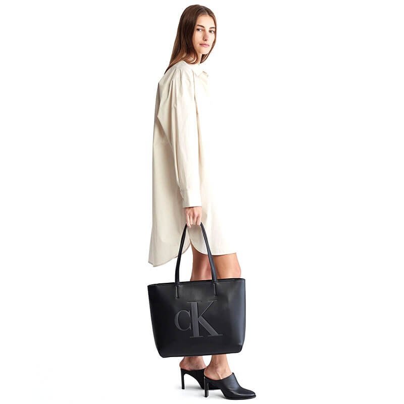 هذه الشنطة منقوشة بشعارن كالفن كلاين المميز بحروف مونوغرام، وهي شنطة مرتفعة ومتعددة الاستخدامات ومثالية لحمل جميع الضروريات اليومية، مصنوعة من الجلد الصناعي ومزينة بشعار منقوش عليها حرف واحد فقط، مصممة بسحّاب إغلاق كامل في الأعلى مع مقابض حمل مزدوجة على الجانبين.