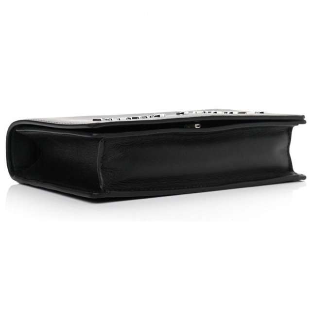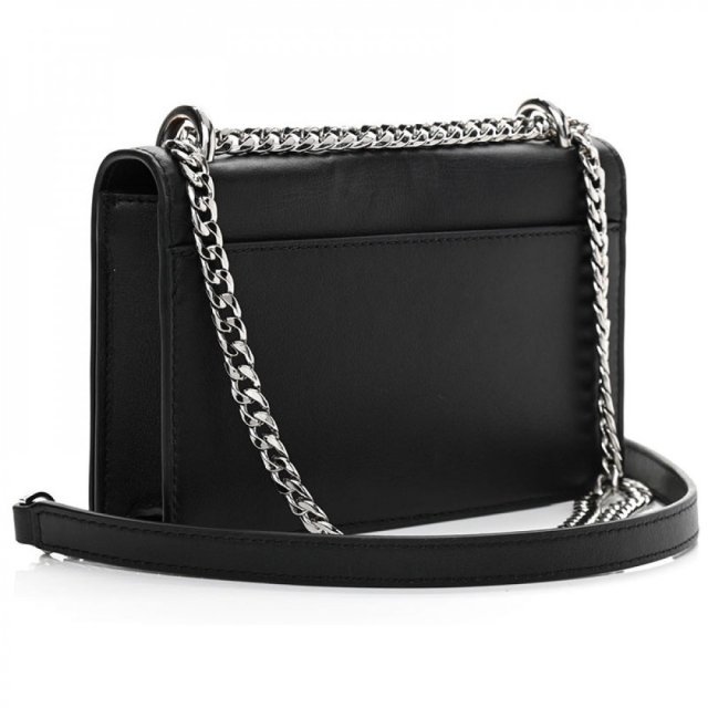- تتزين الشنطة بحروف معدنية فضية بشعار الماركة مع سلسلة فضية لتعطي اطلالة خلابة ومميزة.