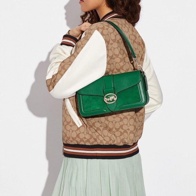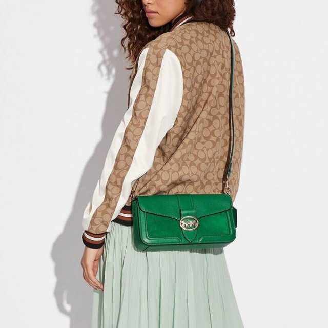 شنطة كتف كوتش جورجي لون أخضر green، حقيبة الكتف الصغيرة المصنوعة من الجلد الناعم والمزودة بحزام طويل يمكن خلعه وتركيبه وتعديل طوله