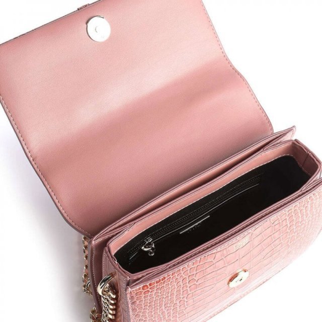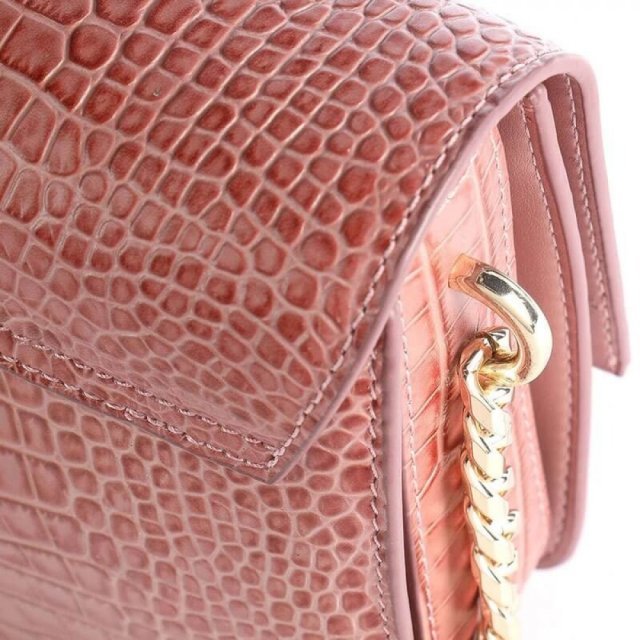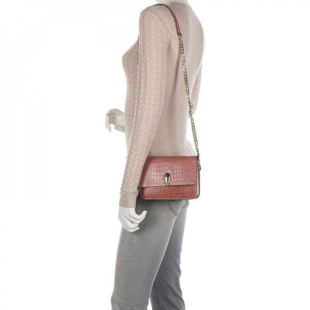 • تتميز بمقبض سلسلة ذهبي اللون يحتوي على قطعة جلدية رائعة مع فتحات، وغطاء بقفل قابل للإغلاق وجيب داخلي بسحاب.