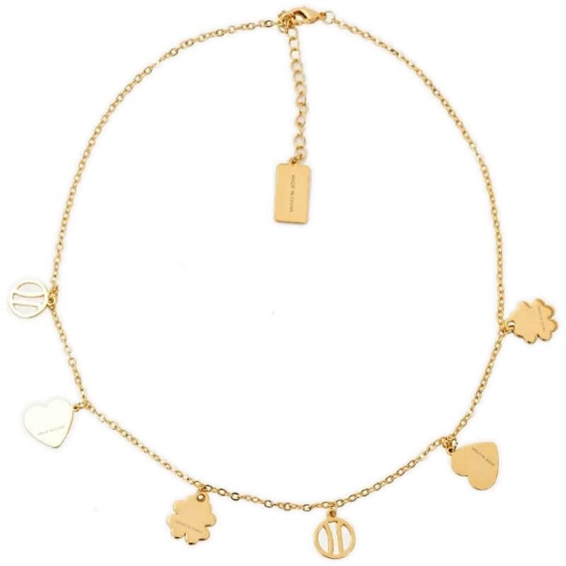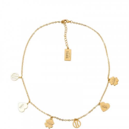 - العقد مزين بعدة تعليقات بأشكال مختلفة مطلية بالذهب