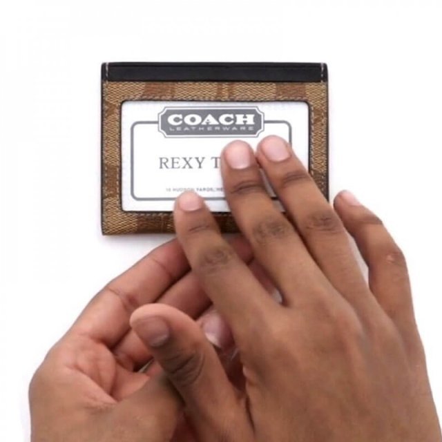 قماش مطلي بالتوقيع مع ثلاث فتحات لبطاقات الائتمان ونافذة الهوية، الأبعاد: 4 بوصة (طول) × 3 بوصة (ارتفاع)