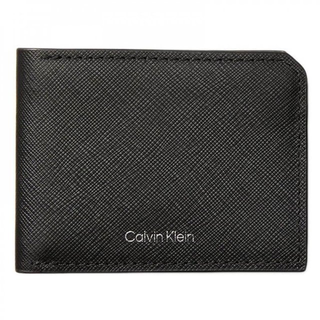 محفظة ثنائية الطي من جلد سافيانو لون أسود ماركة كالفن كلاين معها هدية علبة للسماعات اللاسلكية